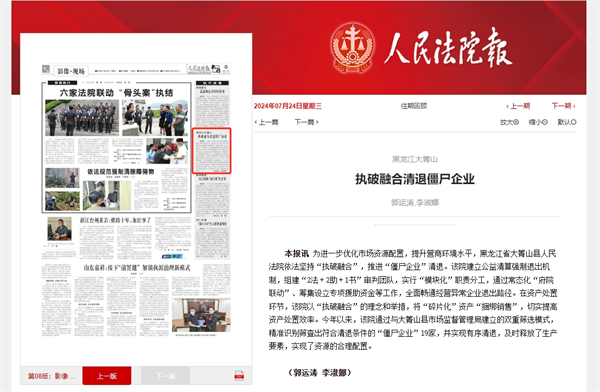 《人民法院报》:黑龙江大箐山 执破融合清退僵尸企业