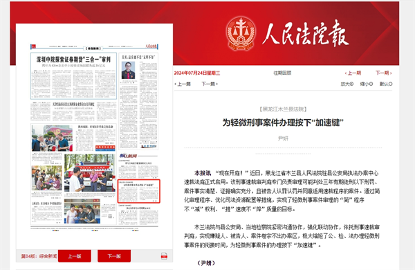 《人民法院报》报道木兰县法院:为轻微刑事案件办理按下“加速键”