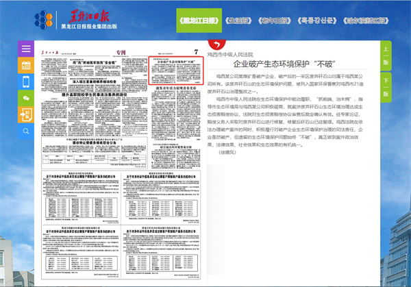 《黑龙江日报》:鸡西市中级人民法院 企业破产生态环境保护“不破”