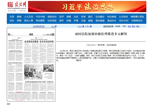 《法治日报》:讷河法院加强诉源治理推进多元解纷