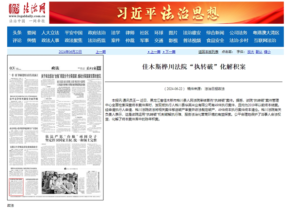 《法治日报》:佳木斯桦川法院“执转破”化解积案