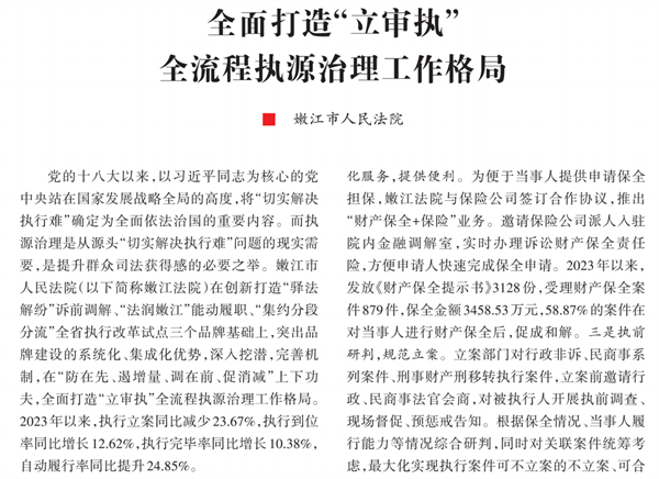《奋斗》:全面打造“立审执”全流程执源治理工作格局