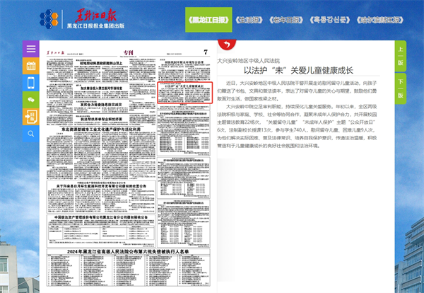 《黑龙江日报》:大兴安岭地区中级人民法院 以法护“未”关爱儿童健康成长