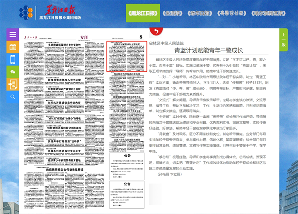 《黑龙江日报》:省林区中级人民法院 青蓝计划赋能青年干警成长
