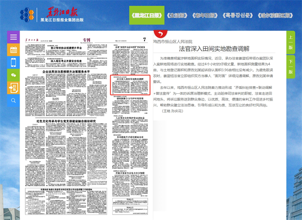《黑龙江日报》:鸡西市恒山区人民法院 法官深入田间实地勘查调解