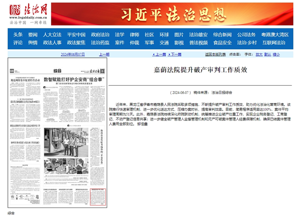 《法治日报》:嘉荫法院提升破产审判工作质效