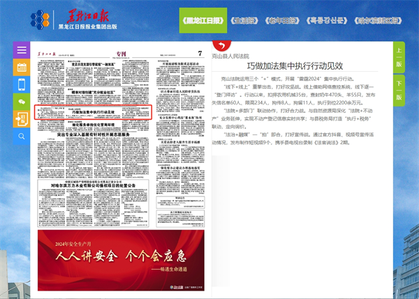 《黑龙江日报》:克山县人民法院 巧做加法集中执行行动见效