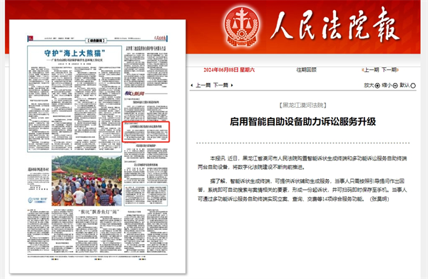 《人民法院报》:黑龙江漠河法院 启用智能自助设备助力诉讼服务升级