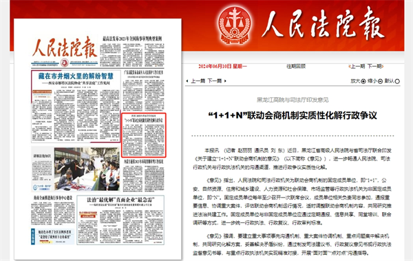《人民法院报》头版报道:黑龙江高院与司法厅印发意见 “1+1+N”联动会商机制实质性..