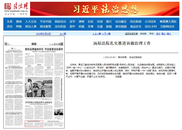 《法治日报》:汤原法院扎实推进诉源治理工作