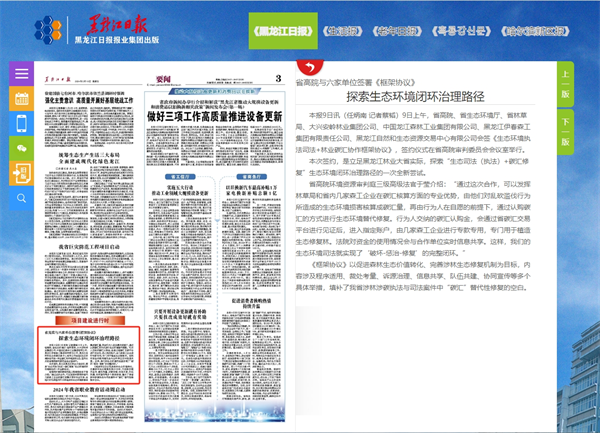 《黑龙江日报》:省高院与六家单位签署《框架协议》 探索生态环境闭环治理路径