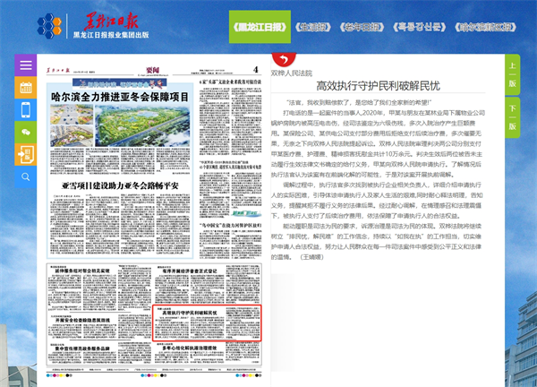 《黑龙江日报》:双桦人民法院 高效执行守护民利破解民忧