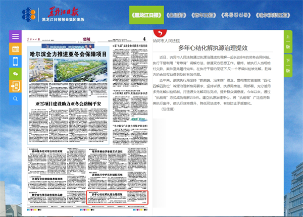 《黑龙江日报》:讷河市人民法院 多年心结化解执源治理提效