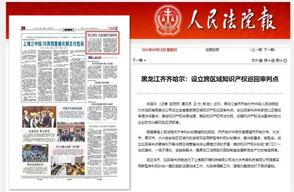 《人民法院报》:黑龙江齐齐哈尔 设立跨区域知识产权巡回审判点