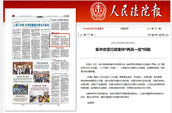《人民法院报》:哈尔滨铁路运输中院 集中攻坚行政案件“两高一低”问题