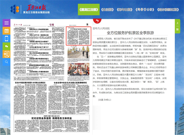 《黑龙江日报》:亚布力人民法院 全方位服务护航景区全季旅游