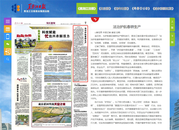 《黑龙江日报》报道农垦法院:法治护航春耕生产