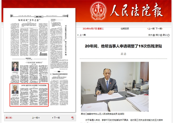 《人民法院报》:20年间 他帮当事人申请调整了19次伤残津贴