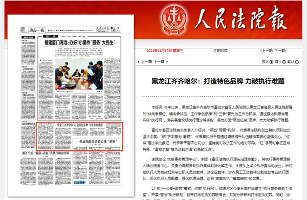《人民法院报》:黑龙江齐齐哈尔 打造特色品牌 力破执行难题