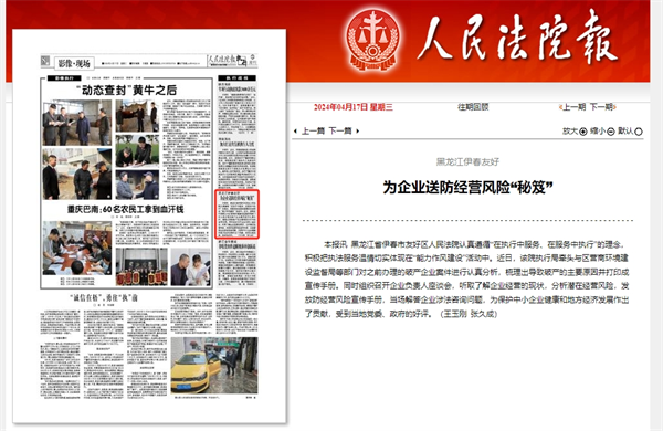 《人民法院报》:黑龙江伊春友好 为企业送防经营风险“秘笈”