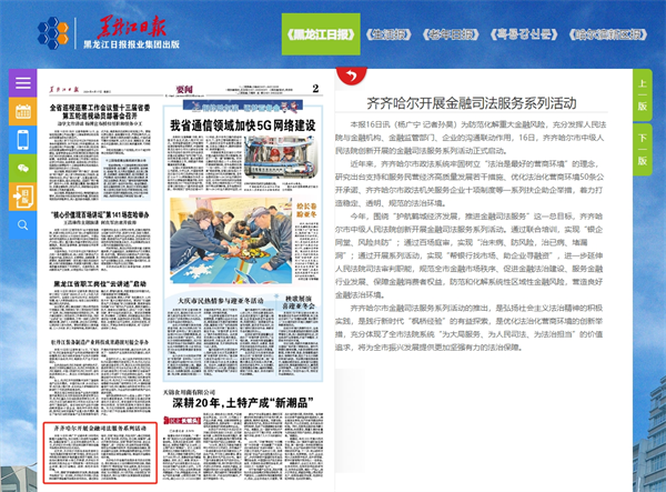 《黑龙江日报》:齐齐哈尔开展金融司法服务系列活动