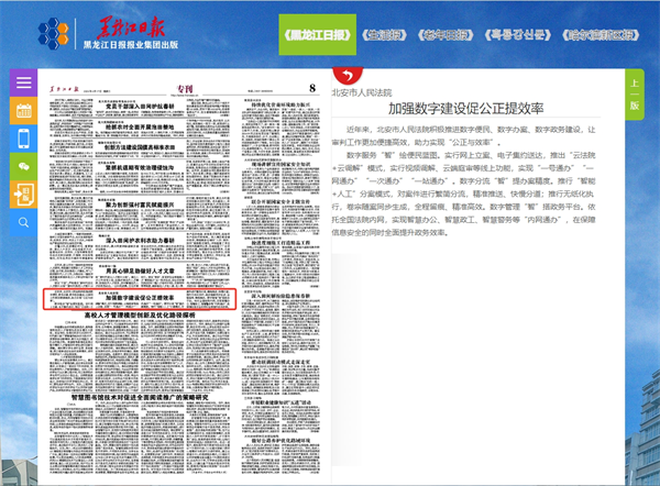 《黑龙江日报》:北安市人民法院 加强数字建设促公正提效率