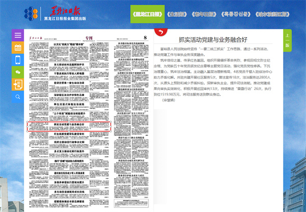 《黑龙江日报》报道富裕县法院:抓实活动党建与业务融合好