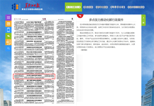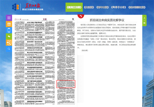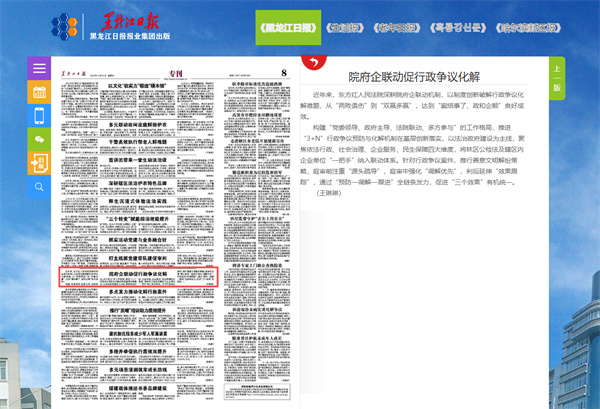 《黑龙江日报》报道东方红人民法院:院府企联动促行政争议化解
