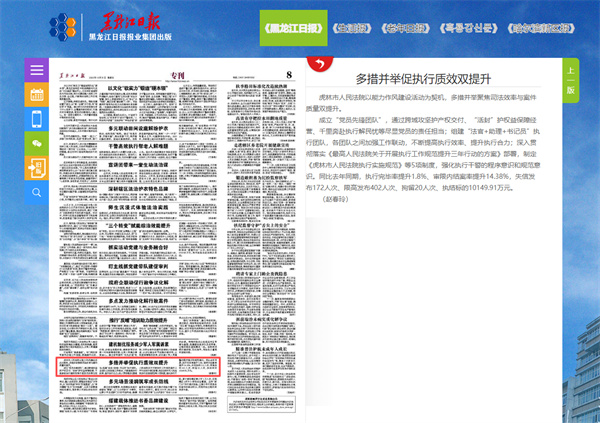 《黑龙江日报》报道虎林市法院:多措并举促执行质效双提升
