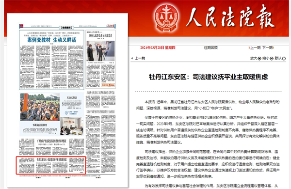 《人民法院报》:牡丹江东安区 司法建议抚平业主取暖焦虑
