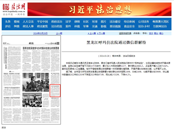 《法治日报》:黑龙江呼玛县法院通过微信群解纷