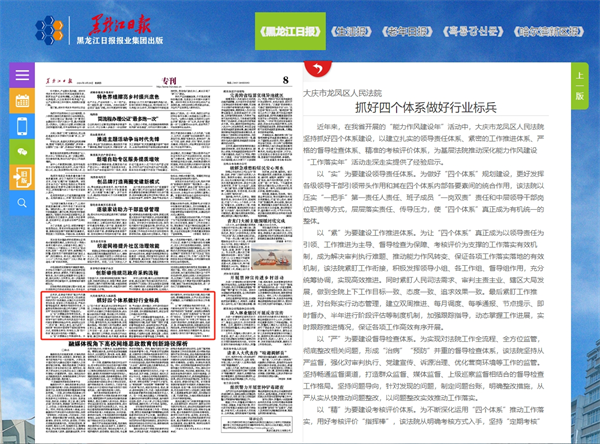 《黑龙江日报》:大庆市龙凤区人民法院 抓好四个体系做好行业标兵
