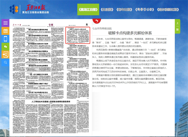 《黑龙江日报》:七台河市两级法院 破解卡点构建多元解纷体系