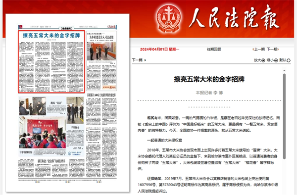 《人民法院报》报道哈尔滨中院:擦亮五常大米的金字招牌