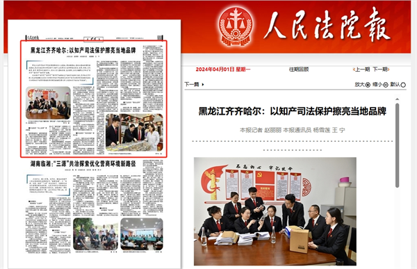 《人民法院报》:黑龙江齐齐哈尔 以知产司法保护擦亮当地品牌