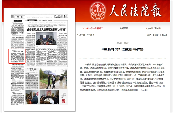 《人民法院报》:黑龙江南岔 “三源共治” 绘就新“枫”景