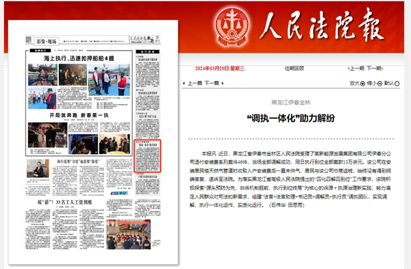 《人民法院报》:黑龙江伊春金林 “调执一体化”助力解纷
