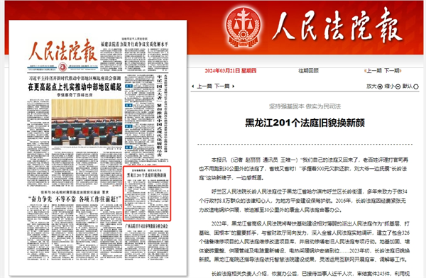 《人民法院报》头版报道:坚持强基固本 做实为民司法 黑龙江201个法庭旧貌换新颜