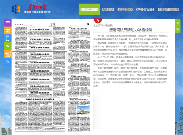 《黑龙江日报》:七台河市中级法院 塑造司法品牌助力冰雪经济