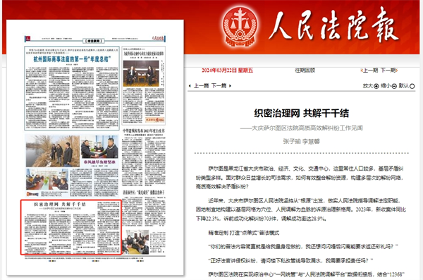 《人民法院报》:织密治理网 共解千千结 大庆萨尔图区法院高质高效解纠纷工作见闻