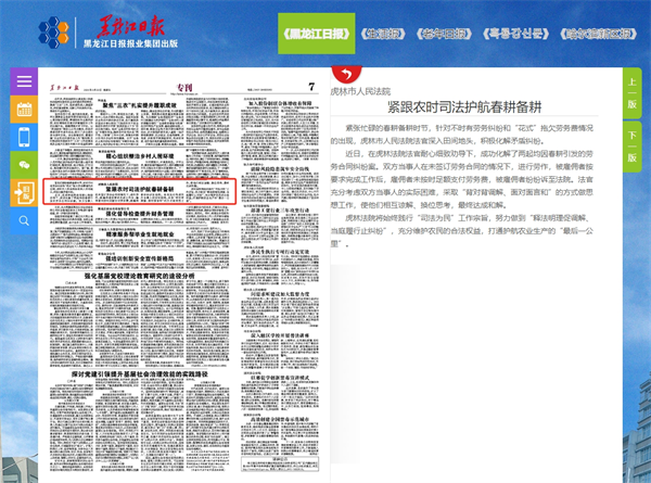 《黑龙江日报》:虎林市人民法院 紧跟农时司法护航春耕备耕