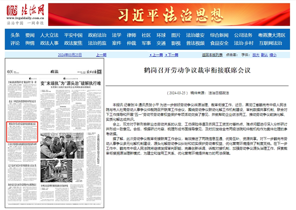 《法治日报》:鹤岗召开劳动争议裁审衔接联席会议