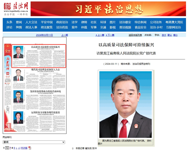 以高质量司法保障可持续振兴 《法治日报》访全国人大代表、黑龙江省高级人民法院党..