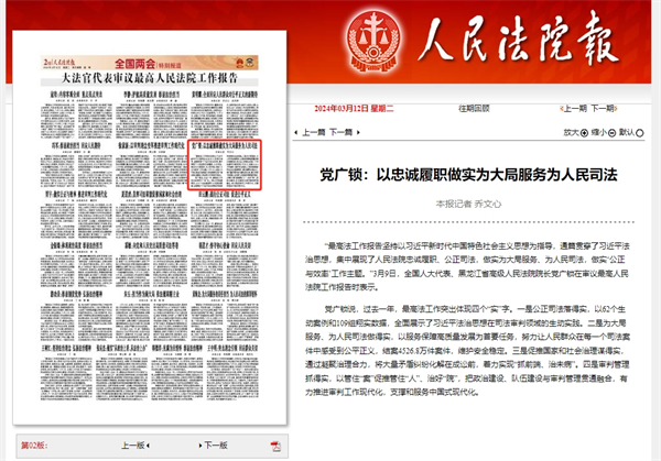 《人民法院报》:党广锁 以忠诚履职做实为大局服务为人民司法