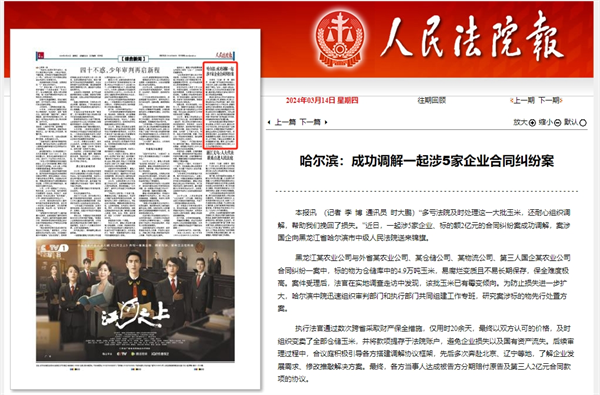 《人民法院报》:哈尔滨 成功调解一起涉5家企业合同纠纷案
