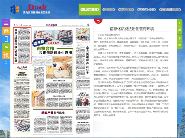《黑龙江日报》报道佳木斯中院:信息化赋能法治化营商环境