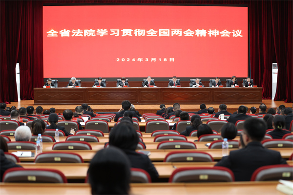 3月18日下午,省法院召开全省法院学习贯彻全国两会精神会议,传达学习贯彻习近平总书记在全国两会期间系列重要讲话和全国两会精神,认真贯彻全国法院学习贯彻全国两会精神电视电话会议和省委领导干部大会精神,并对全省法院“提质增效年”活动作出部署。省法院党组书记、院长党广锁出席会议并讲话。会议指出,今年全国两会是在中华人民共和国成立75周年、实现“十四五”规划目标任务的关键一年召开的一次重要会议,是全国人民政治生活中的一件大事,非同寻常、意义重大。全省法院要切实把思想和行动统一到习近平总书记重要讲话精神和全国两会工作部署、最高人民法院和省委工作要求上来,坚持稳中求进,忠诚履职尽责,严格公正司法,奋力..