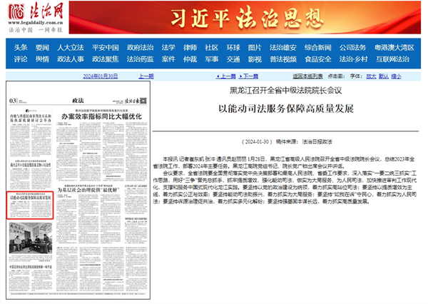 《法治日报》:黑龙江召开全省中级法院院长会议 以能动司法服务保障高质量发展