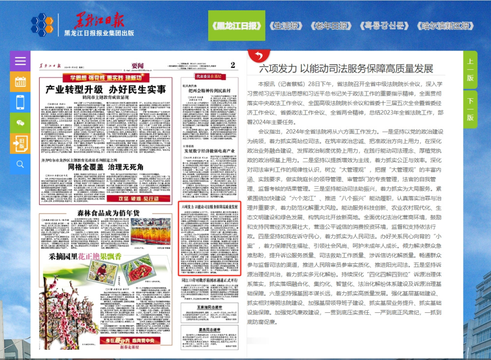 《黑龙江日报》:六项发力 以能动司法服务保障高质量发展