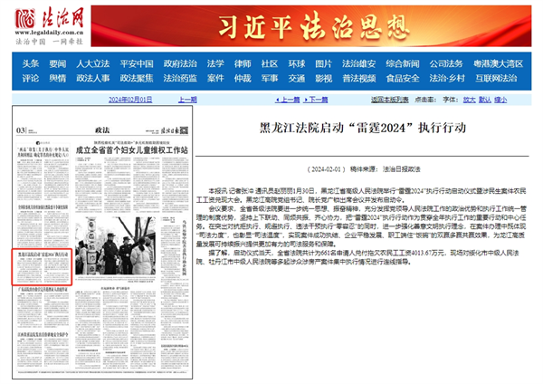 《法治日报》:黑龙江法院启动“雷霆2024”执行行动